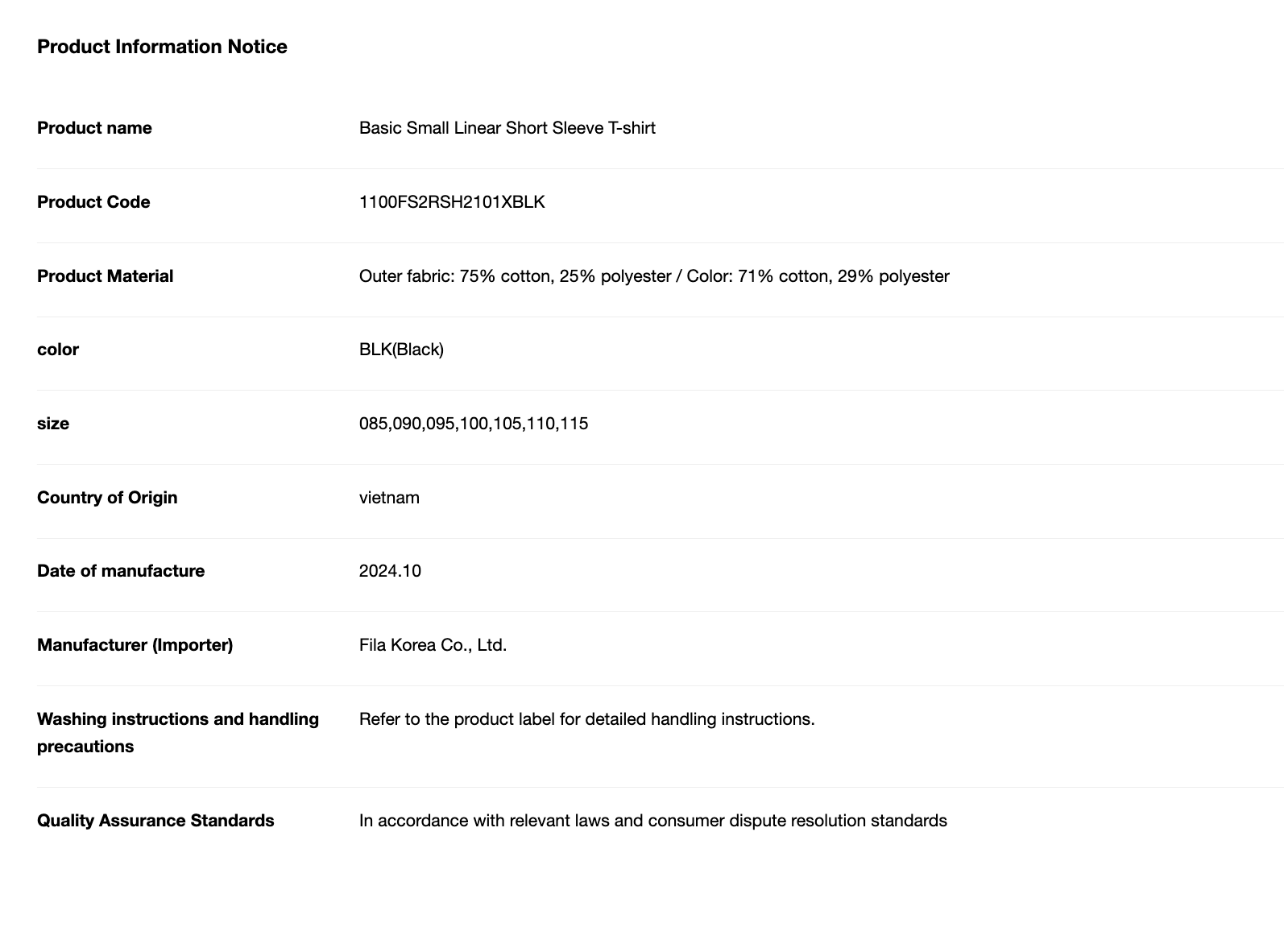 |只有一件|【品牌現貨清倉大折扣】【FILA】Basic Small Linear Short Sleeve T-shirt