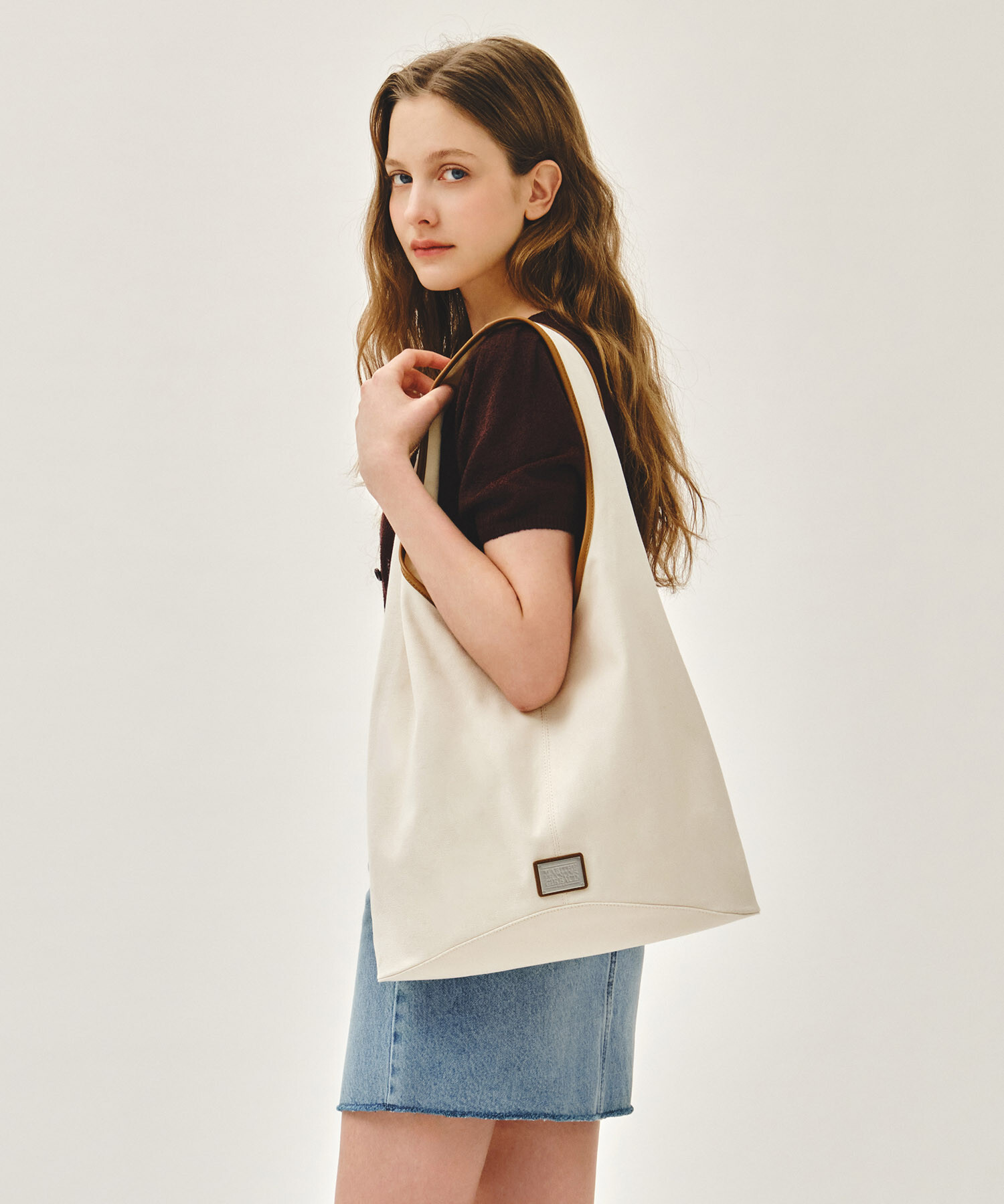 【入LIVECODE一件減至$478😱🔥!】【2026首次春夏封館😍】【MFG】CLASSIC LOGO ONE SHOULDER BUCKET BAG( Natural/Dark Blue)