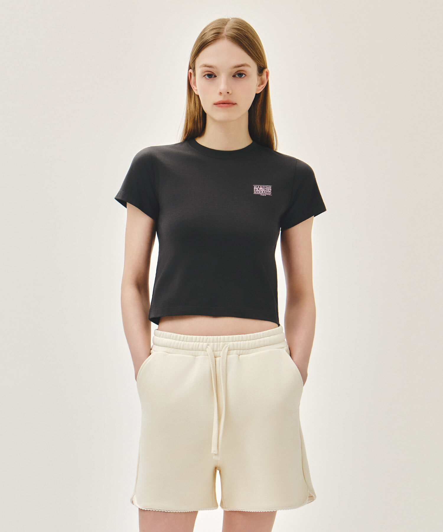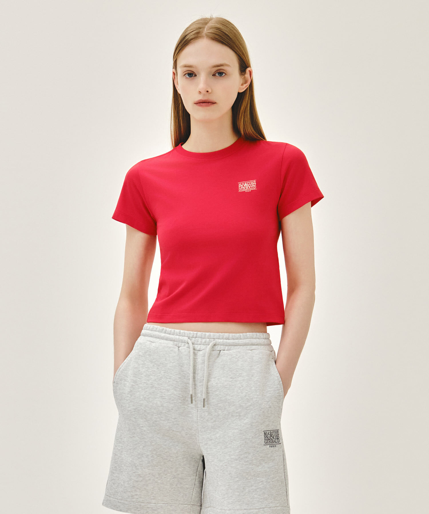 【入LIVECODE一件減至$228😱🔥!】【2026首次春夏封館😍】\凹凸感LOGO/【MFG】W ANTIQUE CLASSIC LOGO SLIM CROP TEE (Charcoal/Cream/Red)