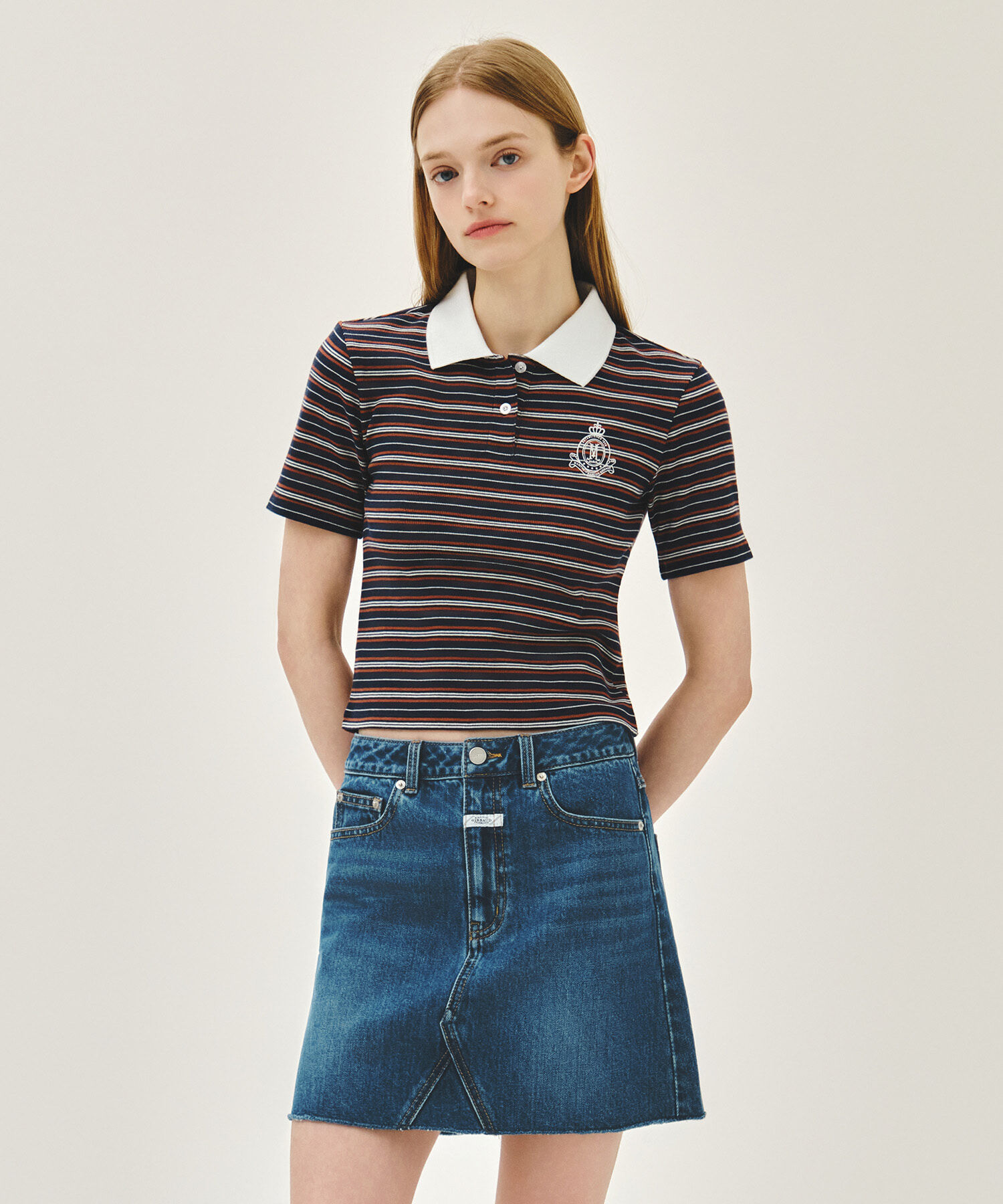 【入LIVECODE一件減至$338😱🔥!】【2026首次春夏封館😍】【MFG】W STRIPE SLIM CROP COLLAR TEE (3 Colors)