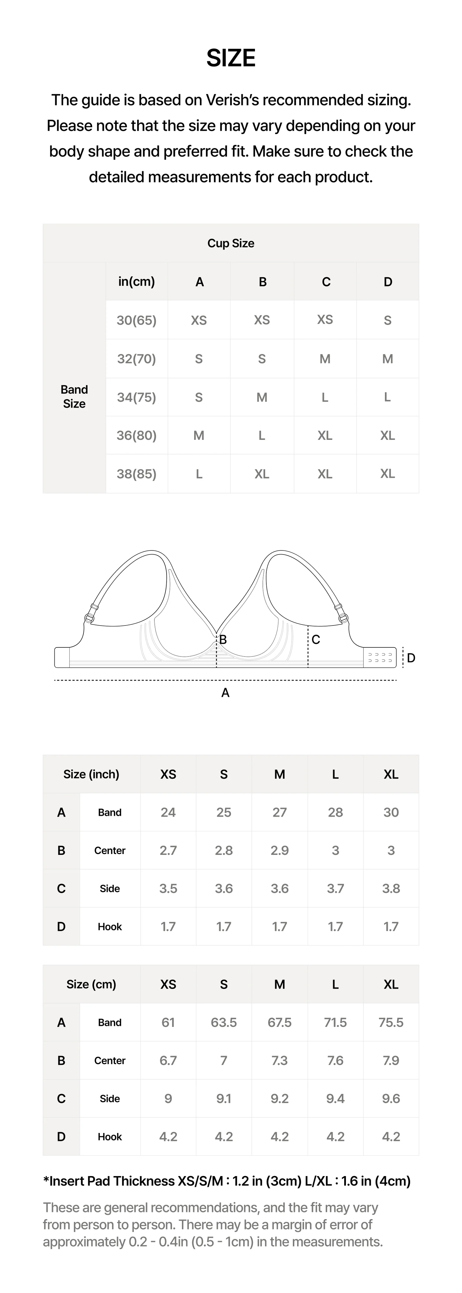- Pad: Integrated | Thickness: 3cm (XS/S/M) 2.3cm (L/XL)
