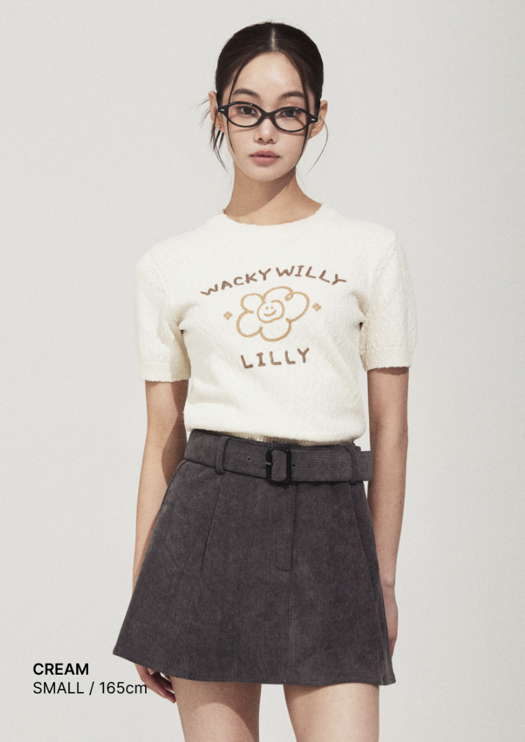 【入LIVECODE一件減至$398😱🔥!】【2026首次春夏封館😍】【WACKY WILLY】[Worn by Giselle] Women's Big Lily Graphic Short Sleeve Knit - Cream