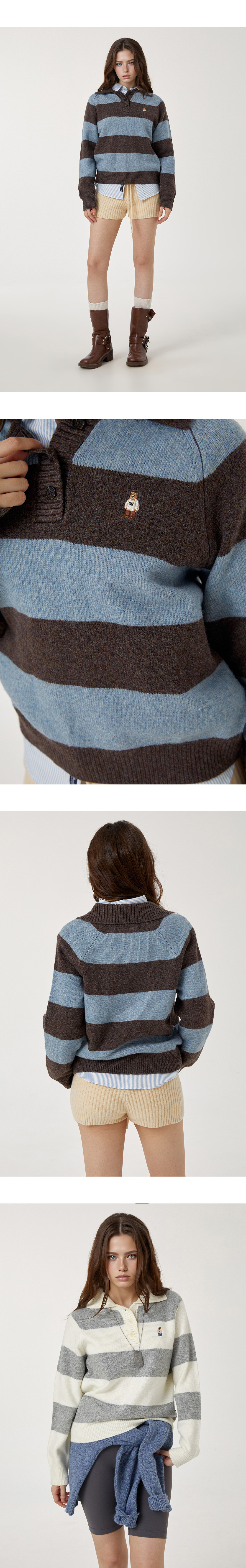 【現貨】【WHOAU】Bokashi Stripe Collar Pullover